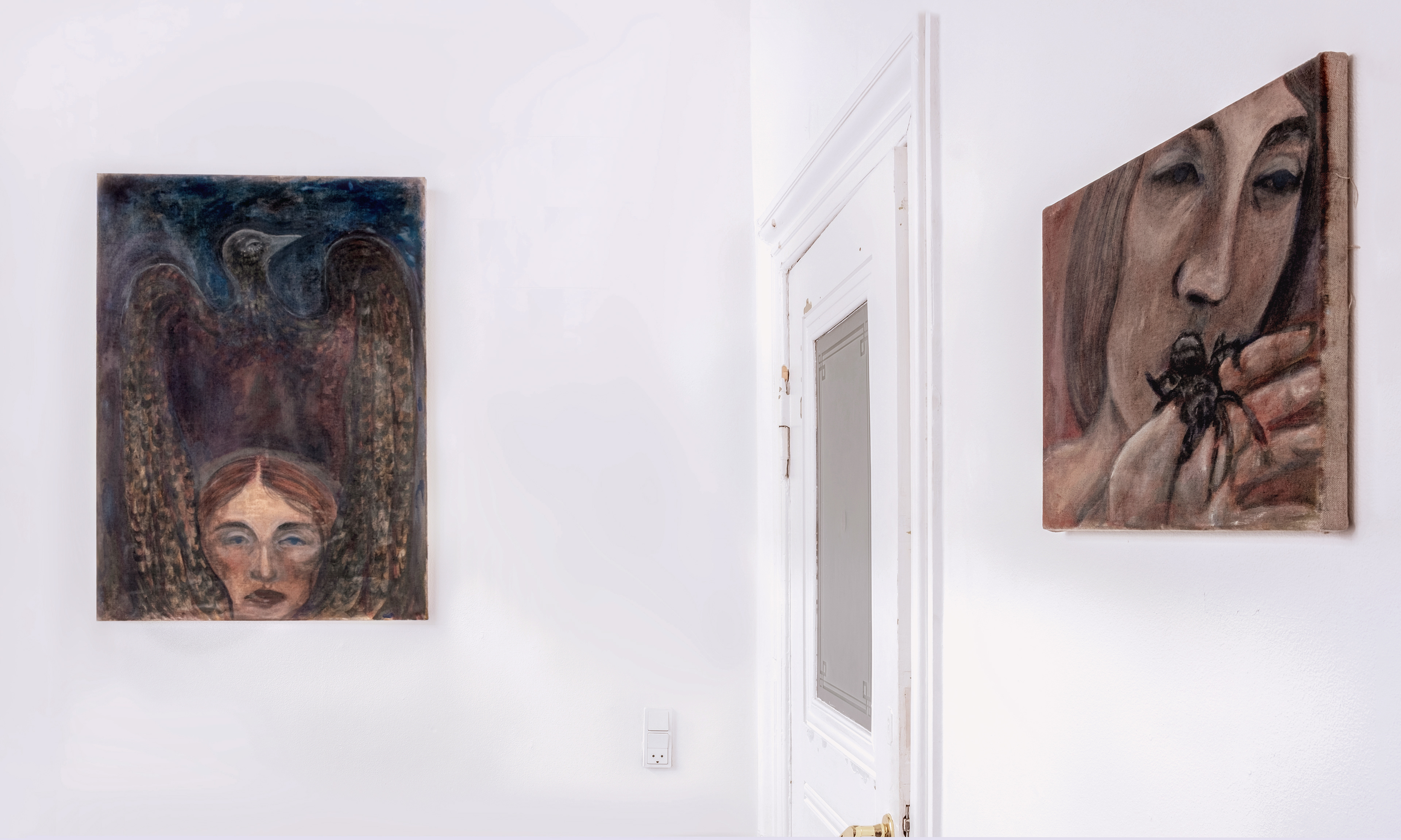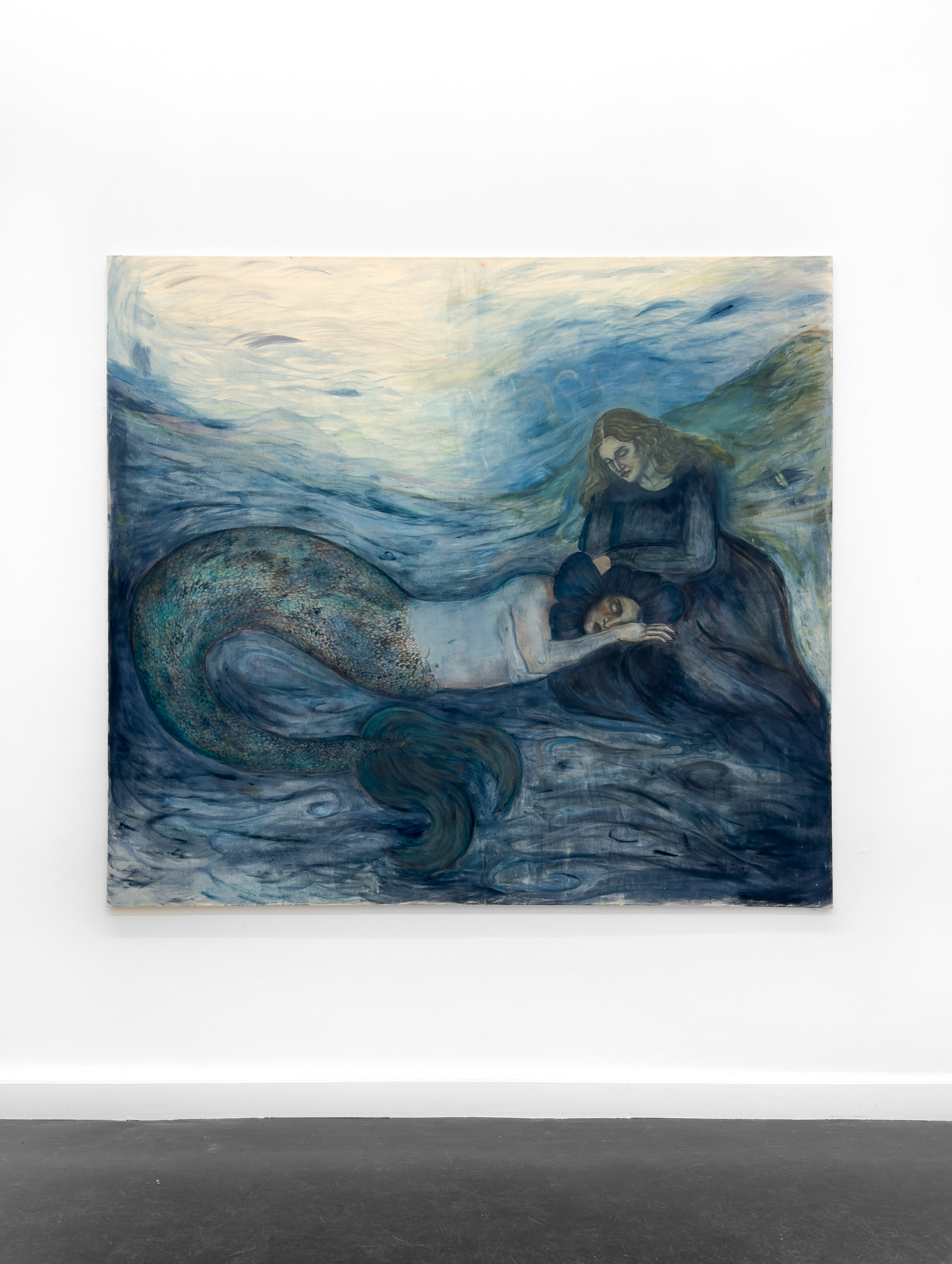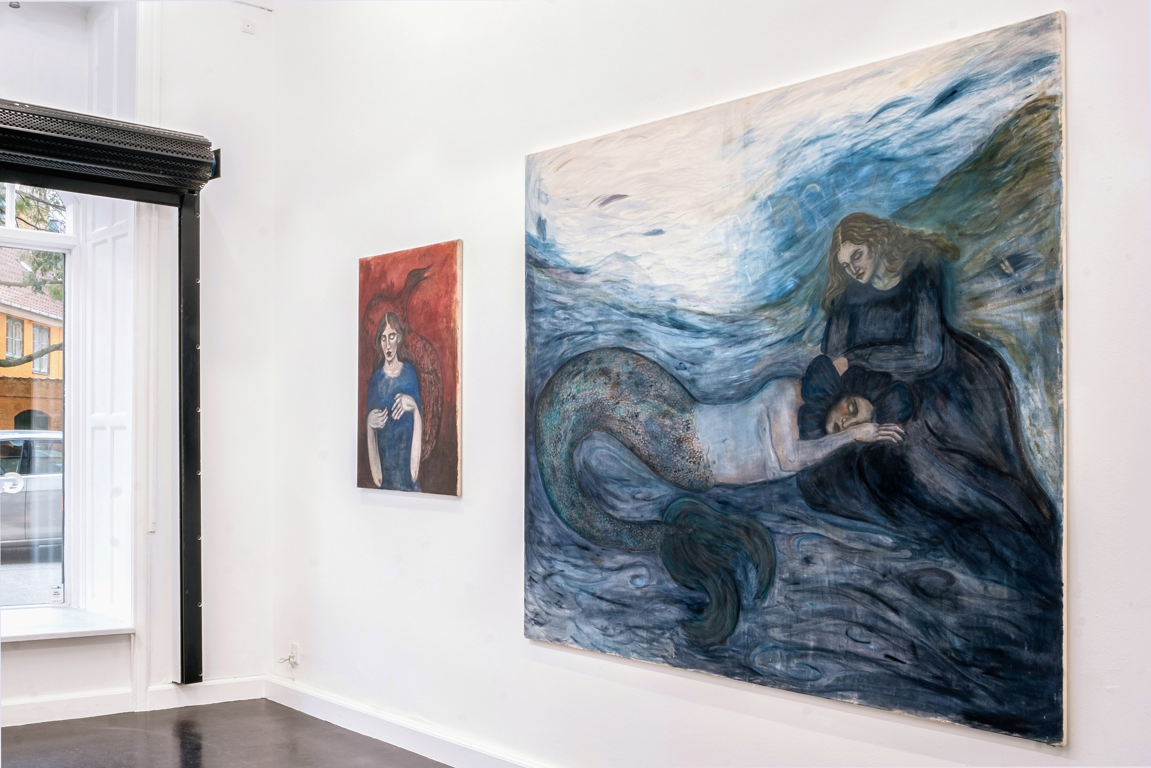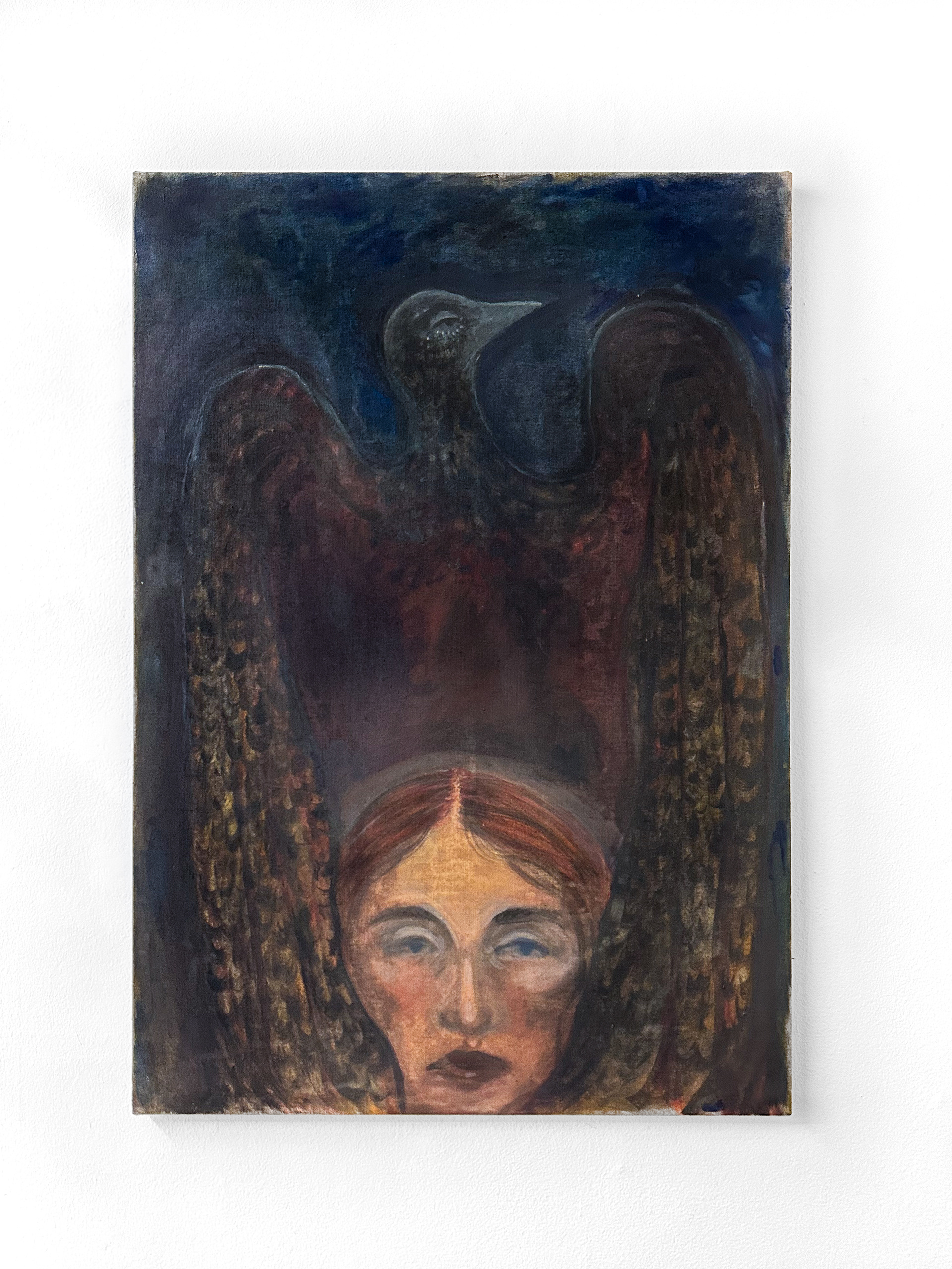 Undercurrents marks Emmarosa Verdoner Liebgen’s first solo presentation at the gallery. Liebgen’s work was previously included in the 2024 group exhibition Sitrende at Galleri Maria Friis. Like excavated relics or forgotten dreams, the exhibition presents a series of paintings and etchings, exploring metamorphic states where human and natural forms collapse into one another. Working figuratively, her motifs shift between female figures, sea creatures and birds as bearers of transition and transformation. The works move through liminal spaces: between sleep and wakefulness, life and death, surface and depth. Dreamlike layers that flow beneath the visible. The show feels both archaic and psychologically introspective. The works recall the Symbolist and Surrealist impulse to visualise the unconscious, in some works even Norwegian Romanticism, yet through a contemporary, feminist lens that reclaims myth and metamorphosis as sites of tenderness,
